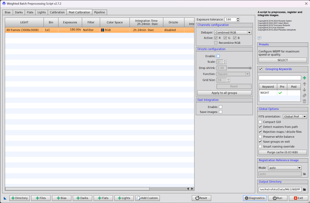 Rovnou můžeme vybrat „Output directory“ tedy složku, do které bude WBPP skript ukládat průběžná data a výsledný složený snímek. Vyberte složku dle vašich preferencí, ale rozdílnou od složky, kde máte uložena data co zpracováváme.